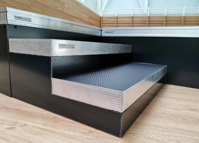 Prémium belsőépítészeti kivitelezésekhez ideális: a Tomkostage mobil színpadrendszer elegáns terekben is esztétikus, “clean” megoldást ad.