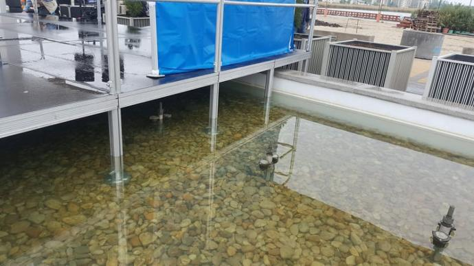 A hat torony közé 23m x 17m színpad fedésére alkalmas.