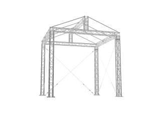 A négy torony közé 12m x 10m színpad fedésére alkalmas, maximum 7m toronymagassággal.