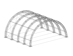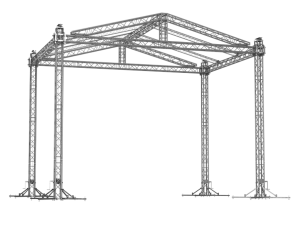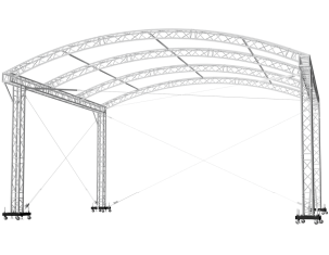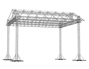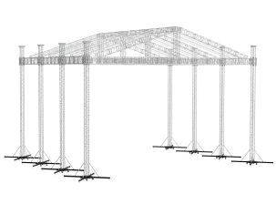 Nyolclábas színpadfedés, akár 21m x 16.5m színpad fedésére, kiemelt teherbírással, maximum 11.5m toronymagassággal.