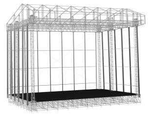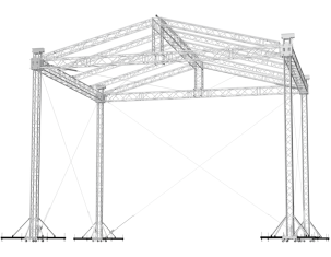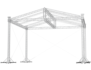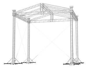 A négy torony közé 11m x 11m színpad fedésére alkalmas.