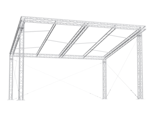 A négy torony közé 10m x 8m színpad fedésére alkalmas, maximum 7m toronymagassággal.