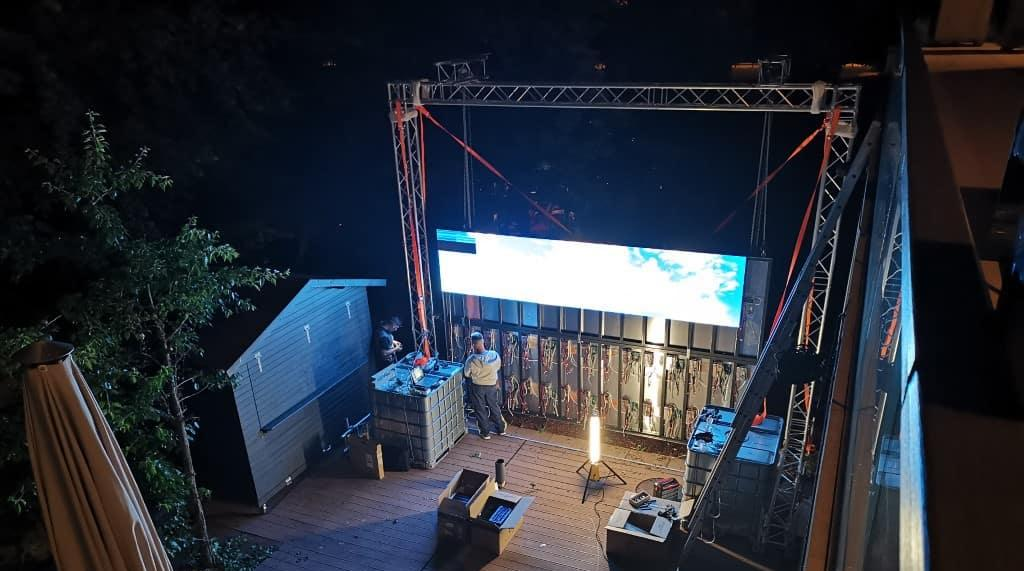 Ez a tartószerkezet egy maximum 5x3 méteres, legfeljebb 1200 kg tömegű LED-fal biztonságos rögzítésére és a szélterhelés elviselésére készült.
