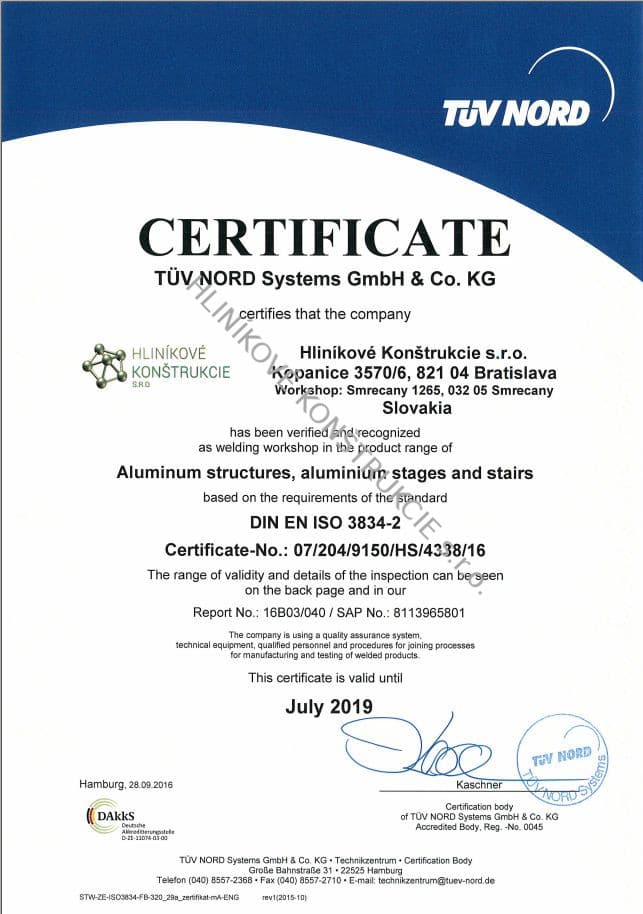 Minden színpadhoz és fedéshez komplett műszaki dokumentációt adunk statikai bizonylattal. A legfontosabb tanúsítványok: