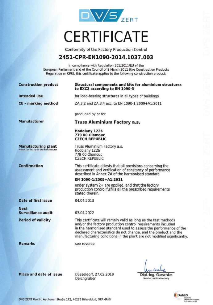 A Truss Aluminium Factory a.s. (TAF) 1998 óta van jelen az iparágban. A TAF ez idő alatt a világ egyik vezető gyártója lett az alumínium rácsos tartószerkezetek gyártása terén. Rácsos tartószerkezet rendszereit világszerte a piac egyik legjobb termékeiként értékesítik.